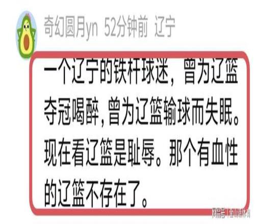 3战2败在杯赛早早出局,也令许多辽迷也感到愤怒,纷纷在网络平台吐槽“唉现在这些人完全看不到一点希望。”;“话都让你说了”;“阵痛没事,哪吒生了三年呢”;“一个辽宁的铁杆球迷,曾为辽篮夺冠喝醉,曾为辽篮输球而失眠。现在看辽篮是耻辱。那个有血性的辽篮不存在了。”;“还扯蛋呢,继续洗,睁着眼说瞎话!”……